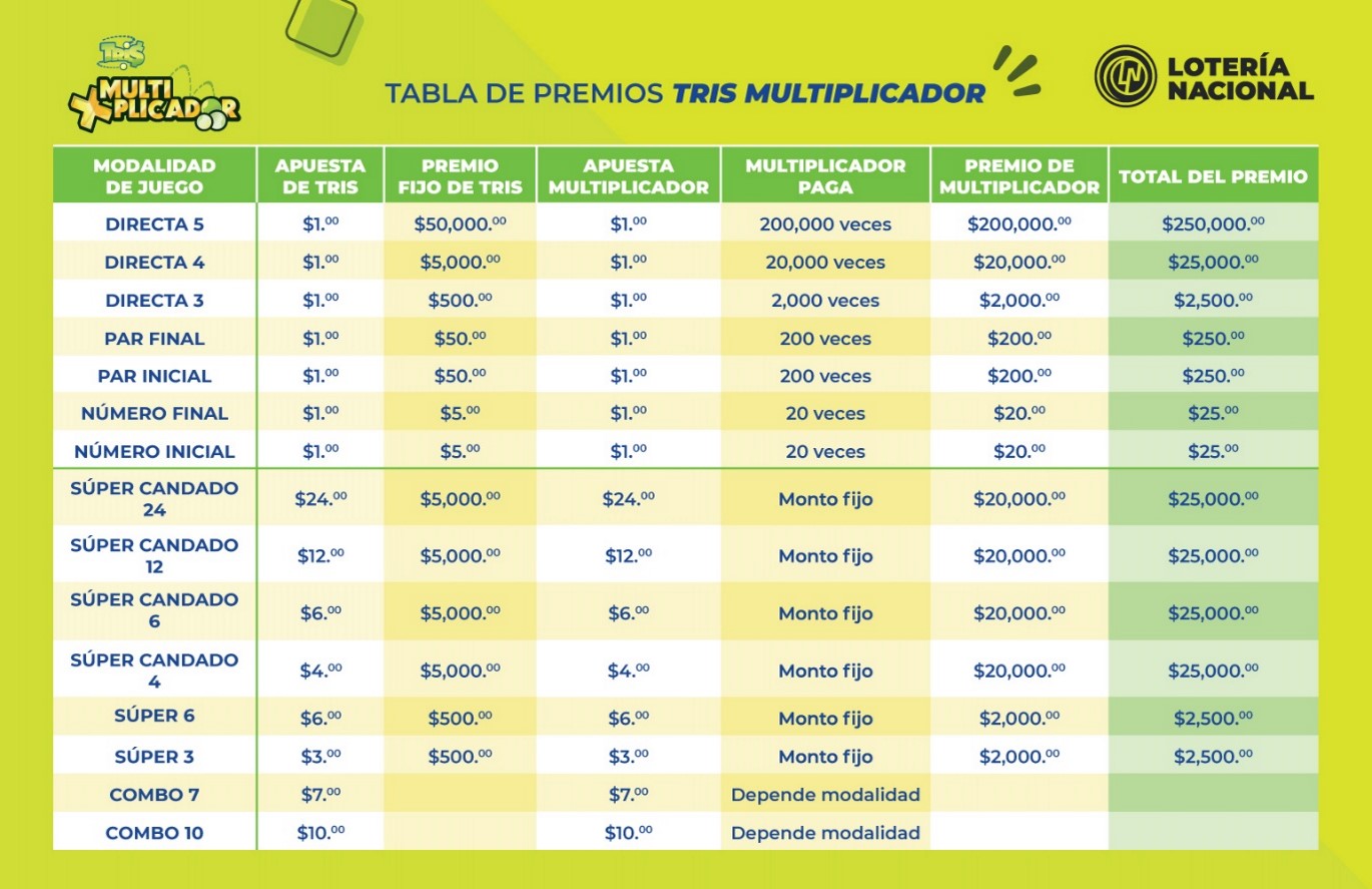 El monto mínimo para jugar Tris es de $1.00